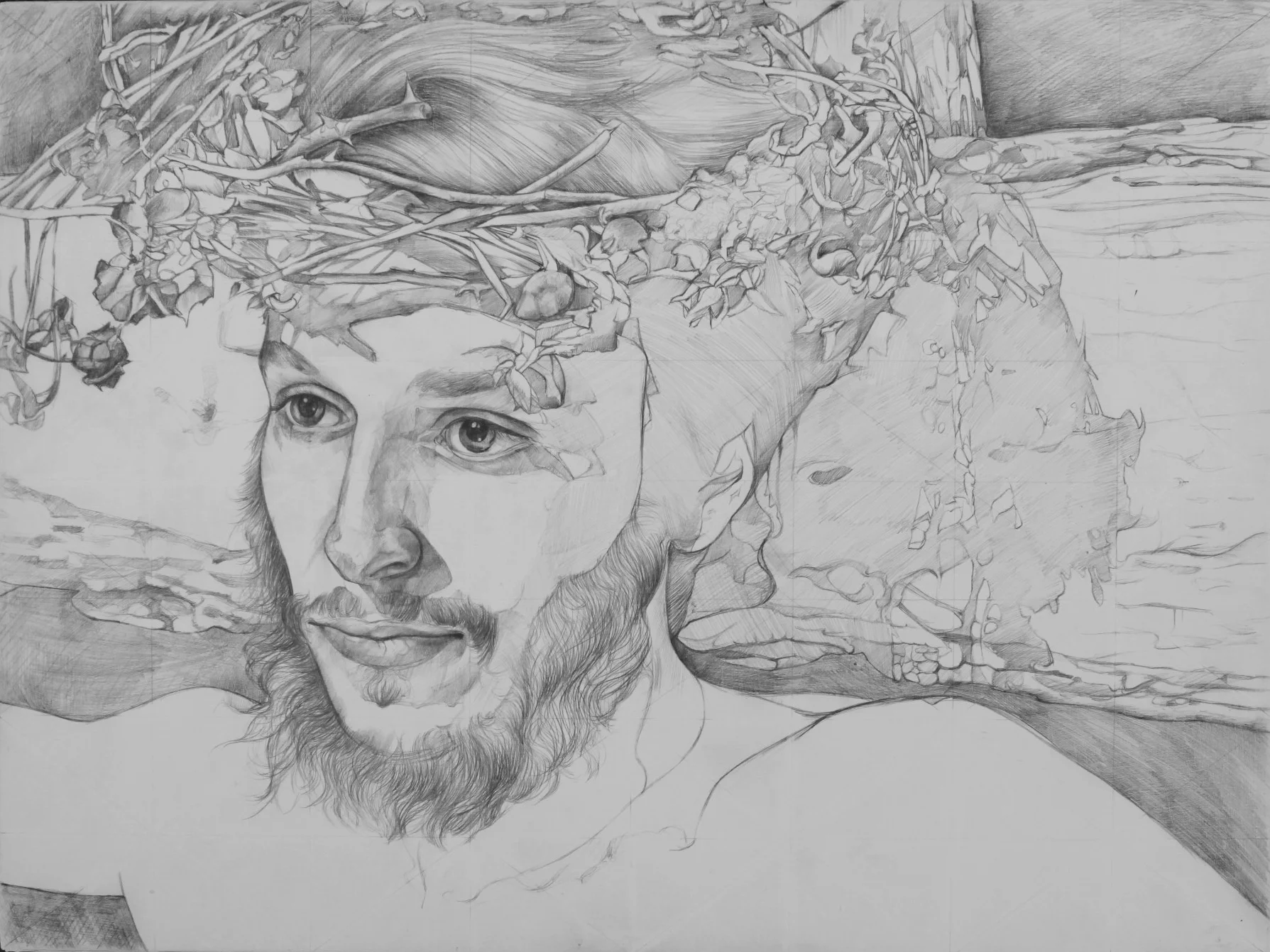 The crisp realism brings the crown of thorns to life. Its shape is a helix. The intertwining branches serve as a visual reminder that God links Himself to man. The shadow cast creates an outline of the crown on white paper. In this crown, Christ bears the curse of Adam on His head, “thorns and thistles it shall bring forth for you;” (Genesis 3:18a). Through suffering, He is the promised Prince of Peace who reconciles us to God. He enters our world as the true King crowned in thorns, not gold; whose kingdom is humility, not glory.